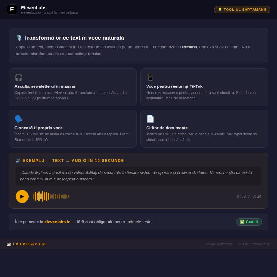 💡 TOOL-UL SĂPTĂMÂNII: ElevenLabs — transformă orice text în voce naturală