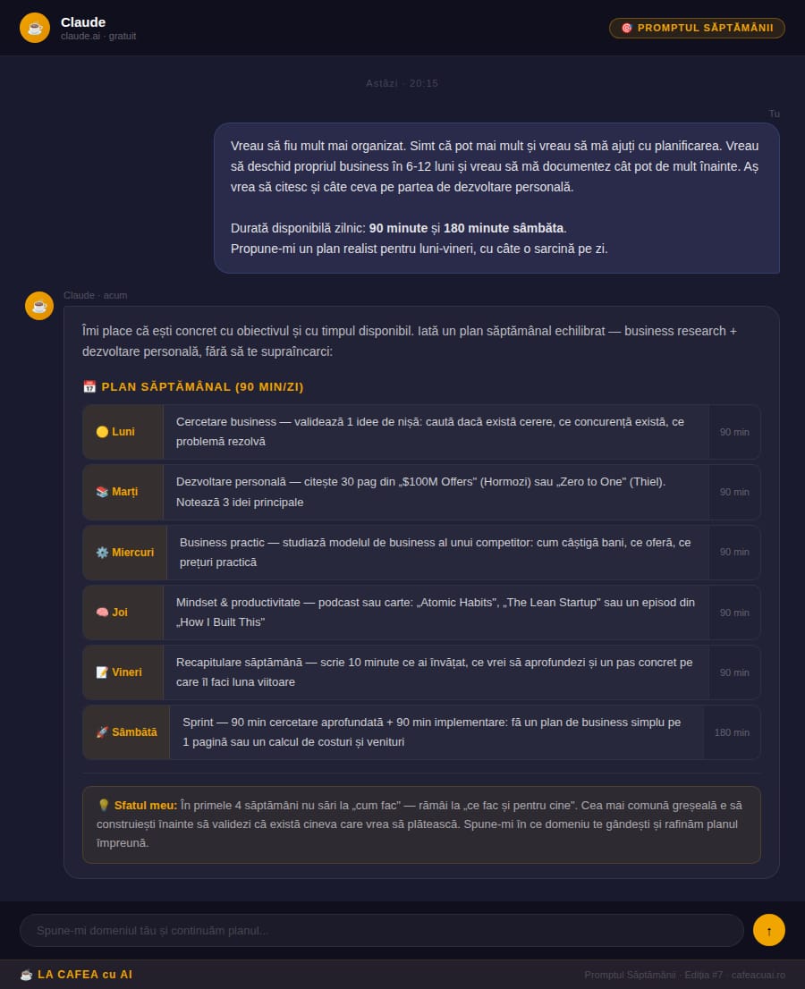 🎯 PROMPTUL SĂPTĂMÂNII — Planificare & Productivitate