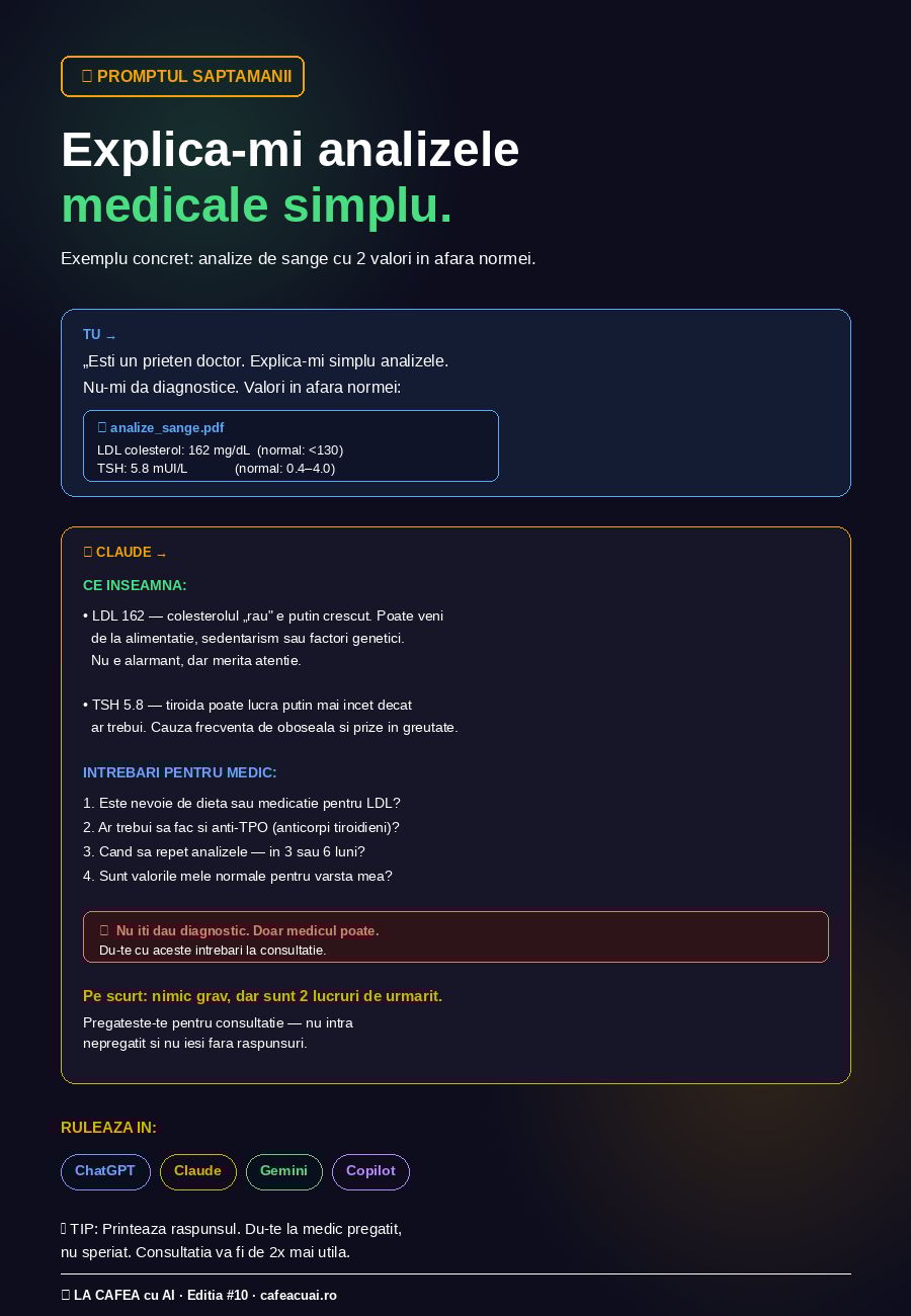🎯 PROMPTUL SĂPTĂMÂNII — 💊 „Explică-mi analizele medicale ca si cum ai fi un prieten doctor"