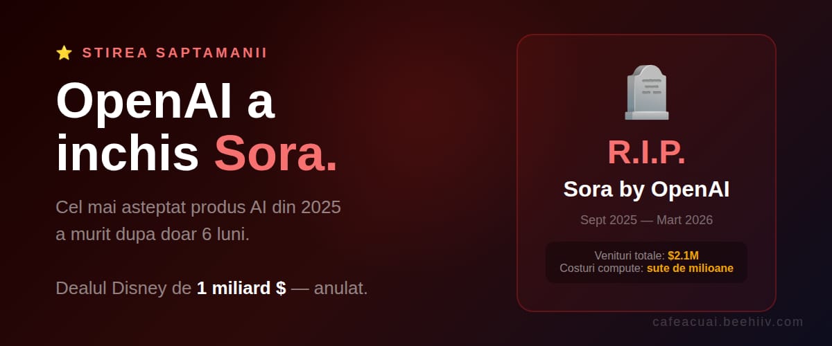🌎 OpenAI a închis Sora. Cel mai așteptat produs AI din 2025 a murit după 6 luni.